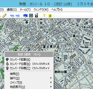 カシミールを立ち上げて、ダイアモンド富士を見たい場所の地図を表示します。