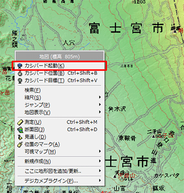 ここで、見たい場所の上で右クリック→[カシバード起動]でカシバードを起動しましょう。 |