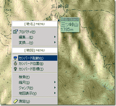 もし、この▲の表示がない山であれば、山頂と思われるところで、右クリックし、[カシバード起動]を選んでください。