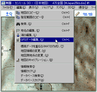 まず、メニューの[編集]→[GPSデータ編集]を選択します。