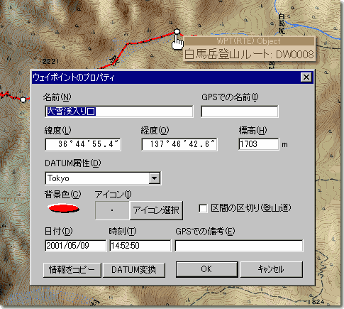 ルート上の、大きな○や小さな・にマウスを近づけてみてください。