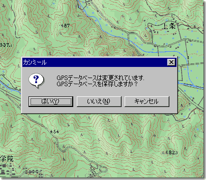 新しい登山ルートを作成すると、カシミールを終了するときに、左のような画面が出ます。