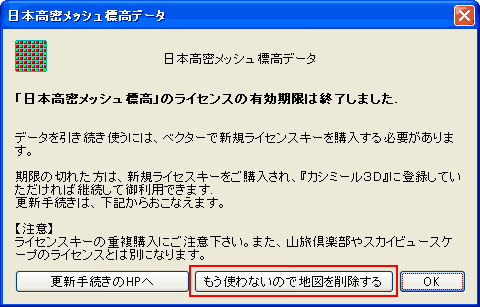 試用期限経過後に、使用をされないことにされた場合は、下記の方法でデータを削除することができます。 本データを開こうとすると、試用期限が経過した旨のメッセージが出ます。ここで[もう使用しないので削除する]ボタンを押してください。確認メッセージに応答して削除が完了します。
