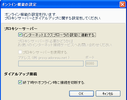 お使いのインターネット接続サービスで、プロキシーサーバーが必要な場合は、プロキシーサーバーの設定を行ってください。