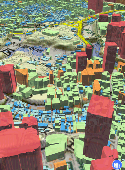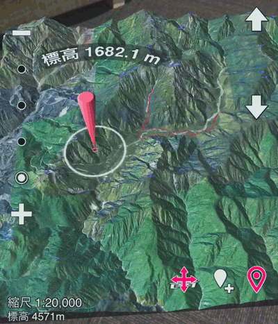 地図上で二本指で縦にスワイプしてください。地図が斜めになっていきます。