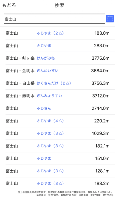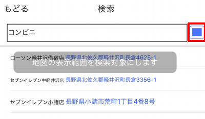 前に表示していた地図や、場所に戻りたいときにリストをタップすれば戻ることができます。