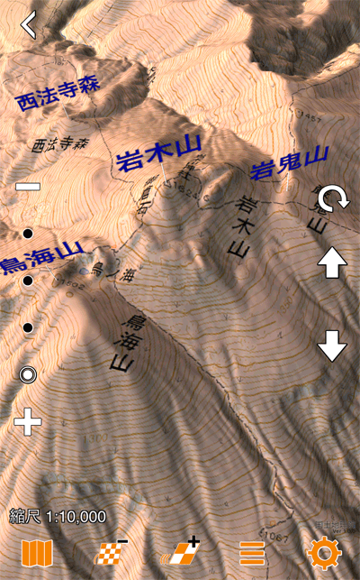 ボタンは2つ以上の地図を重ねている場合で、背景の陰影の濃さや、地図の透明度などを変更できます。