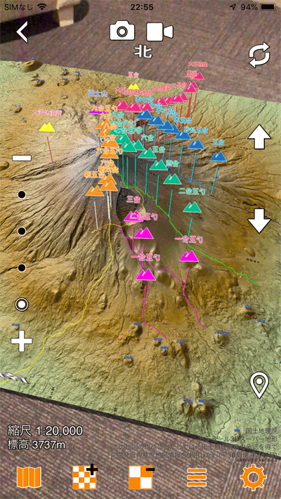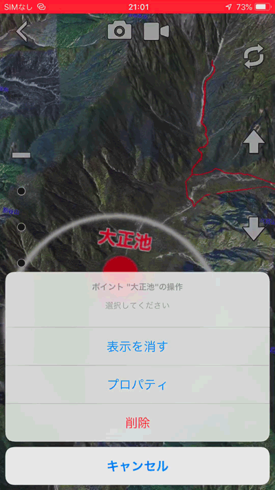 iPhone/iPadアプリの『スーパー地形』を使うと、『スーパー地形』で記録したトラックや、ポイントを簡単に本アプリに転送して起動できます。