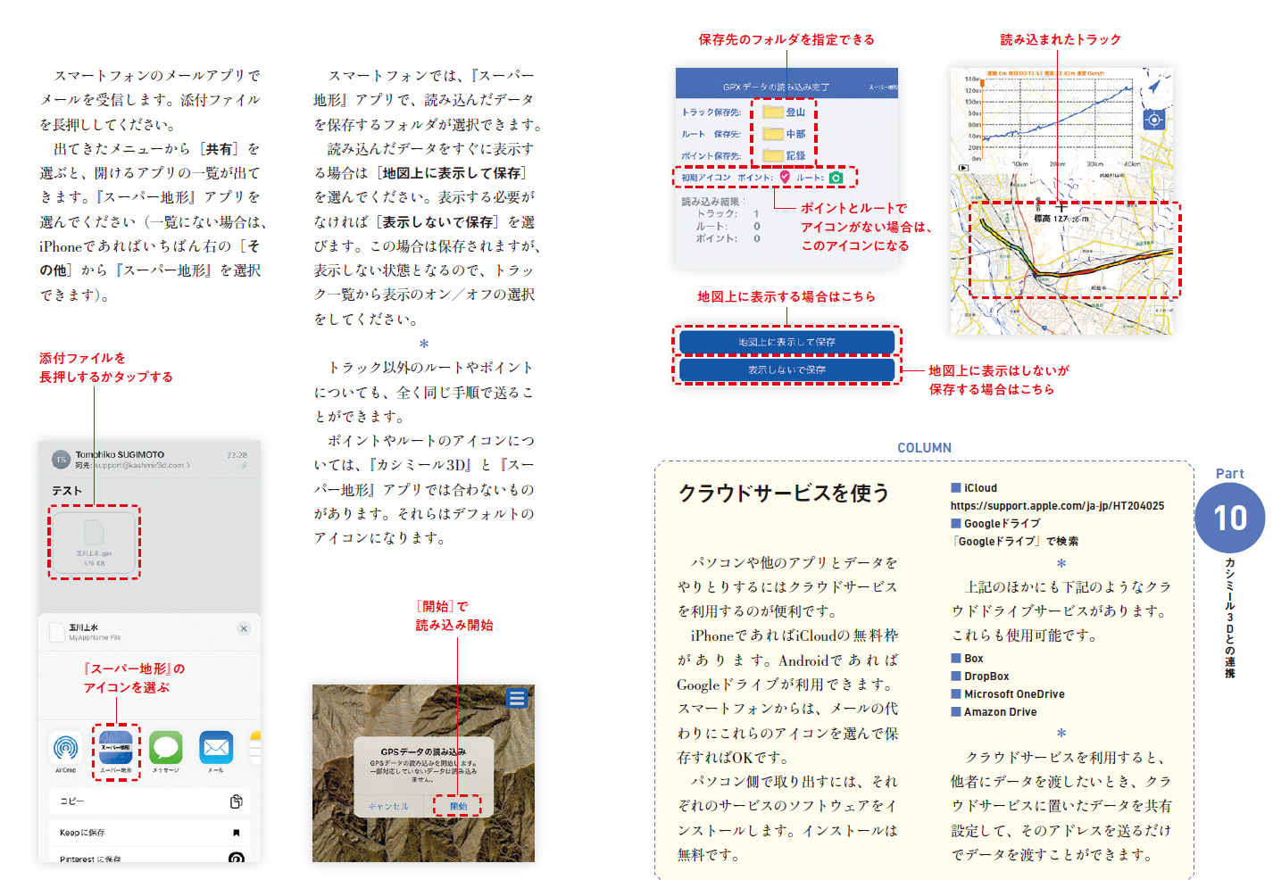 メールでもらったGPXを入れる方法(「スーパー地形公式ガイドブック」より)