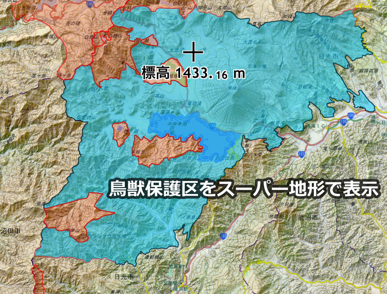 『スーパー地形』ならではの地図です。わかりにくい複雑な地形でも強調されて浮かび上がってきます。