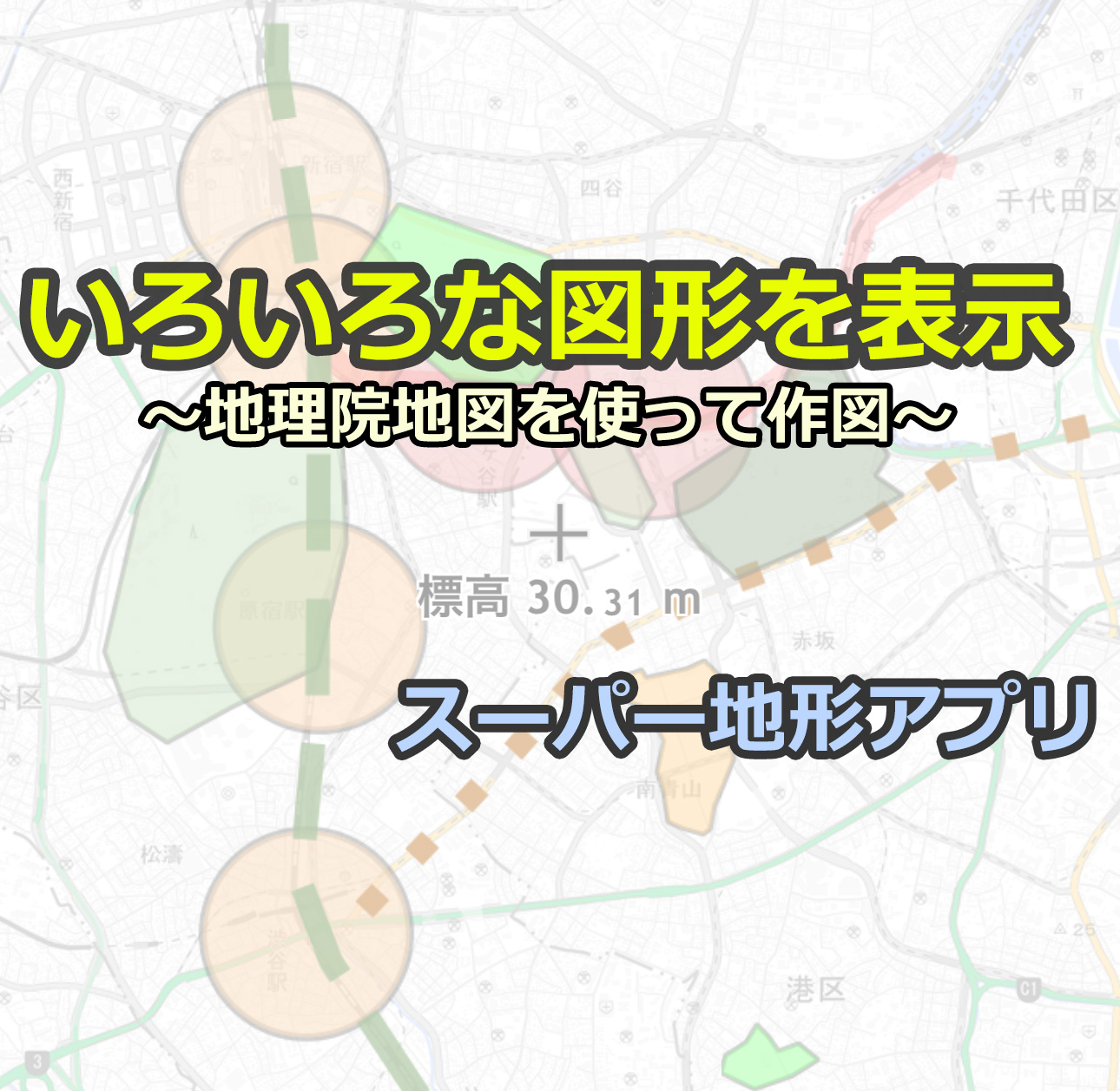 GoogleMapやOpenStreetMapなど、等高線のない地図に等高線を入れることができます。