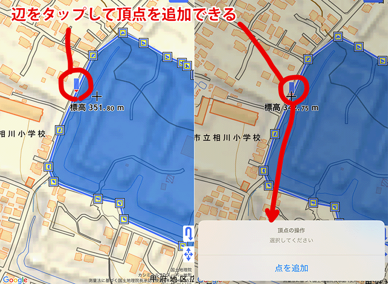 [既存の地物へ追加]を選択した場合は、選んだ地物に追加されます。