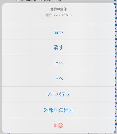 地物をタップすると下記のメニューが選べます。