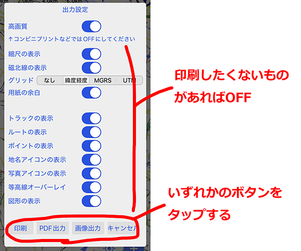 ※アプリ起動時は安全のため、すべての地物が表示OFFになります。上記の一覧から表示したいものをONにし直してください。