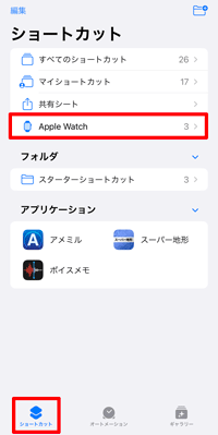 AppleWatchで使用するには、アプリをインストール後に、iPhoneのウォッチアプリを開いて、「マイウォッチ」から「スーパー地形」アプリをWatchにインストールしてください。