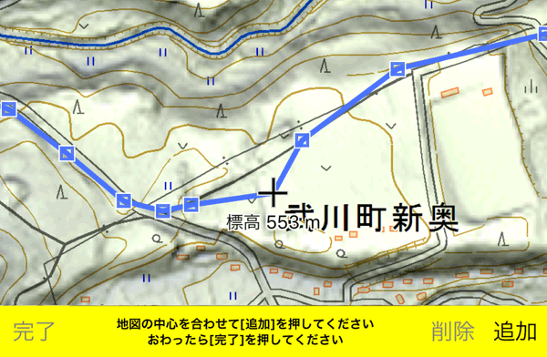 地図画面を長押しすると、地図中心の位置にポイントを追加できます。