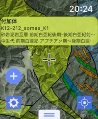 地質図のように解説がある地図の場合は、中心位置を合わせると、その場所の解説が出ます。