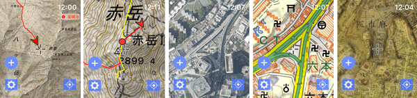 一部の地図では、図名ボタンが付きます。同じ地図で年代が違うものなどを素早く切り替えるのに使用できます。