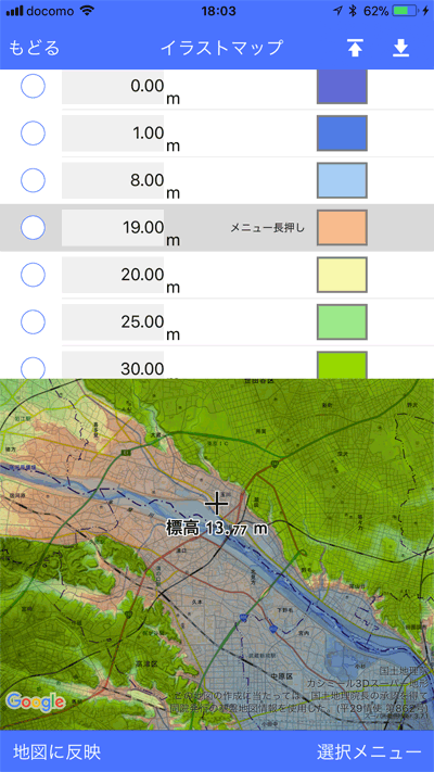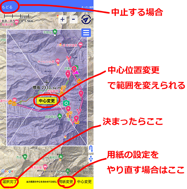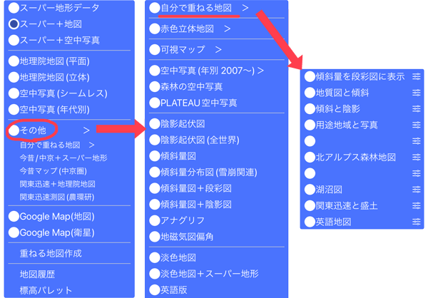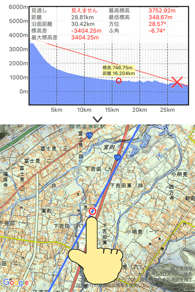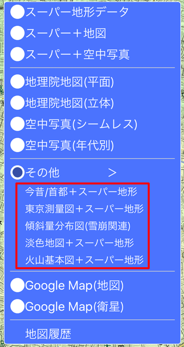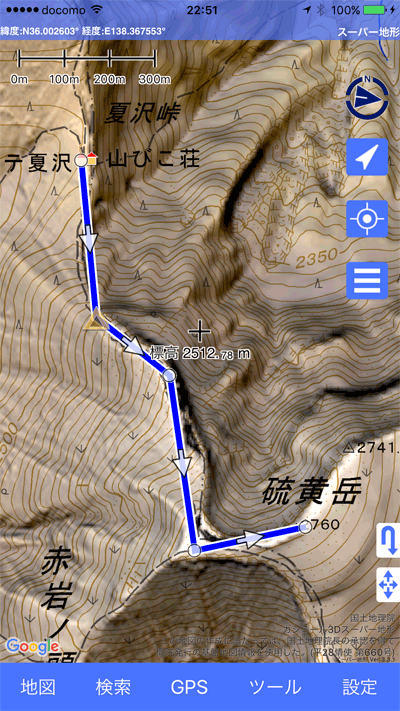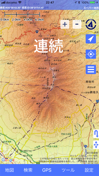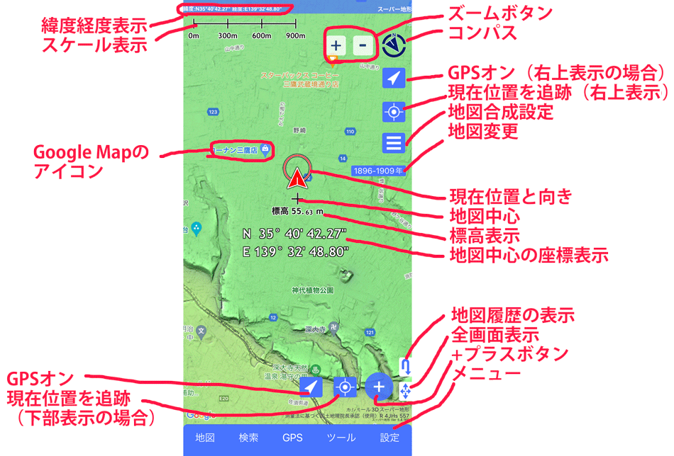 地図以外の断面図や、その他の画面キャプチャは、スーパー地形アプリを使用したことを出典明記すれば自由に使用できます。