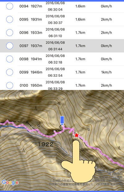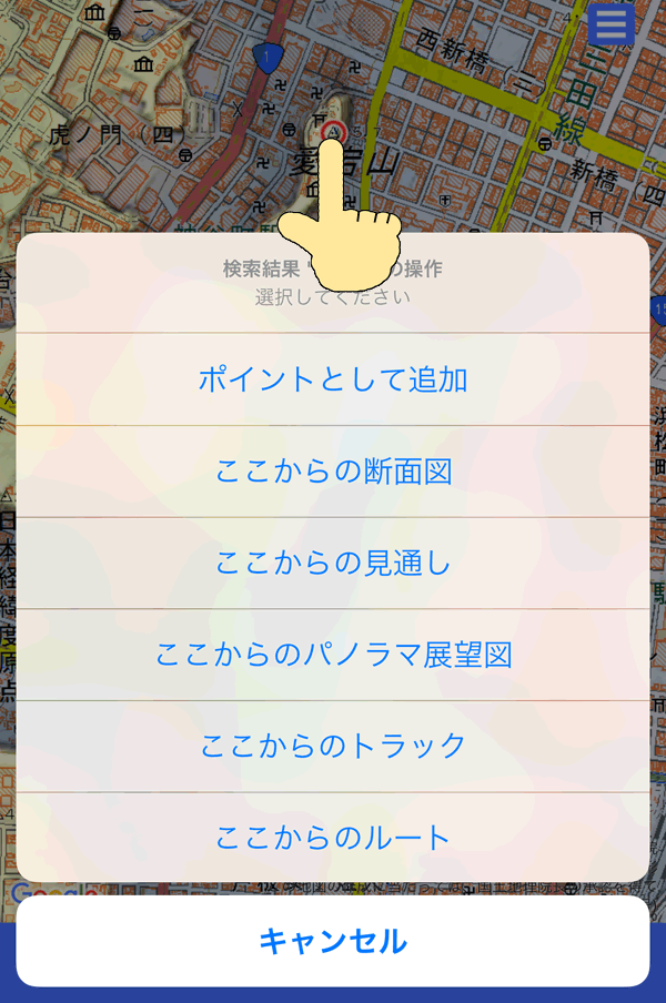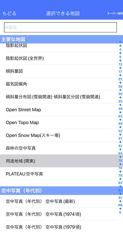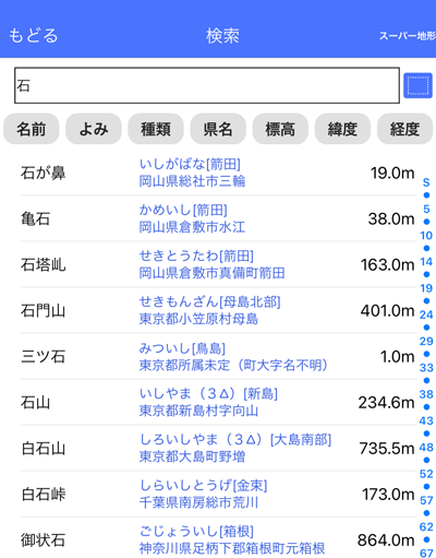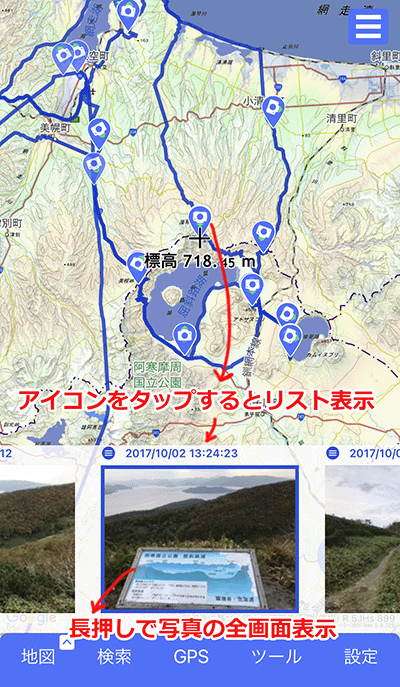 前に表示していた地図や、場所に戻りたいときにリストをタップすれば戻ることができます。