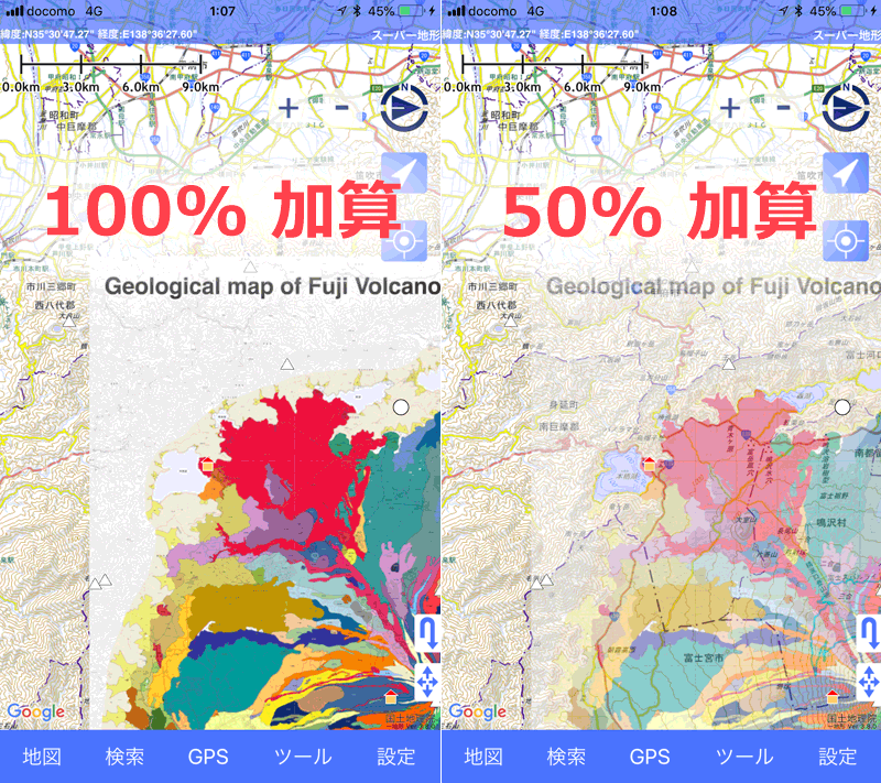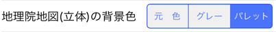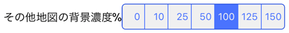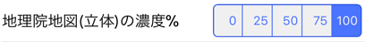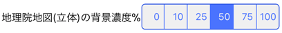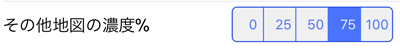 ボタンは一部の地図で表示されます。2つ以上の地図を重ねている場合で、背景の陰影の濃さや、地図の透明度などを変更できます。