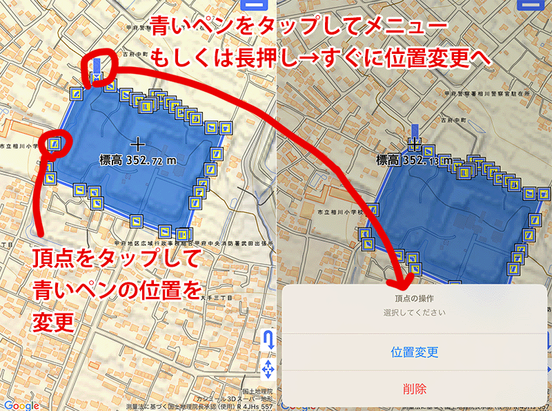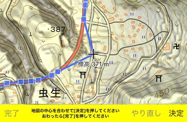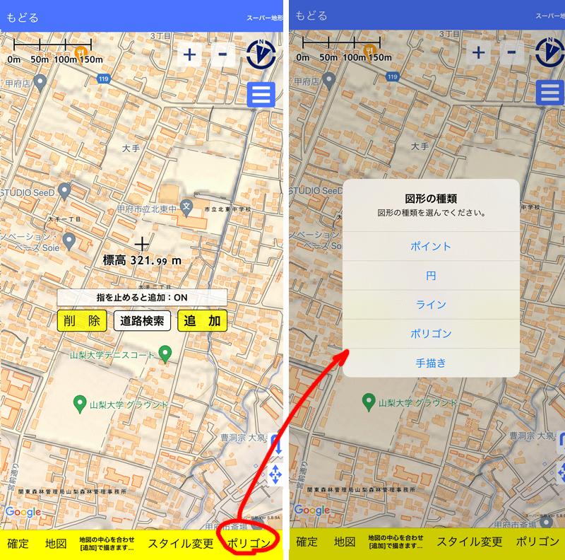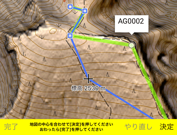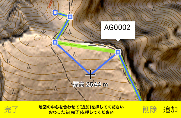 地図画面を長押しすると、地図中心の位置にポイントを追加できます。