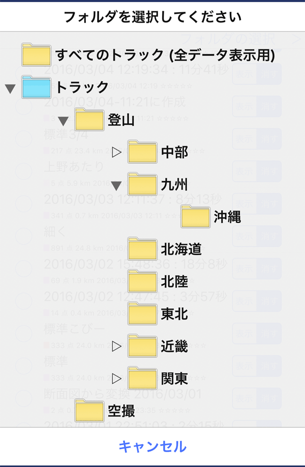 [すべてのトラック]はフォルダ分けしていない状態を表示します。