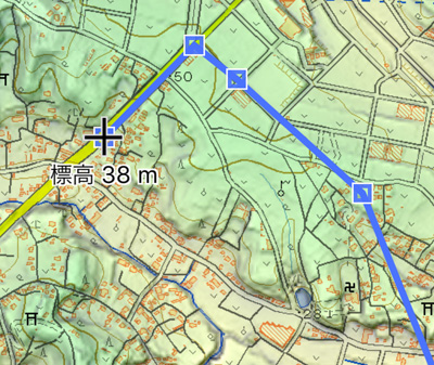 断面図などその他の線は大円ではなく平面地図上の直線です。