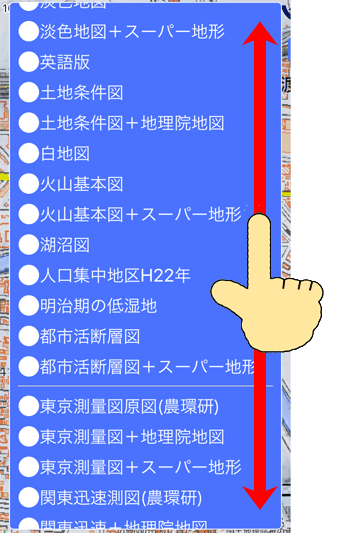一部の地図では、図名ボタンが付きます。同じ地図で年代が違うものなどを素早く切り替えるのに使用できます。
