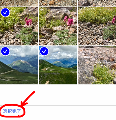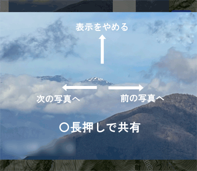 個別の写真だけを共有したい場合は、写真表示から共有ボタンを押してください。