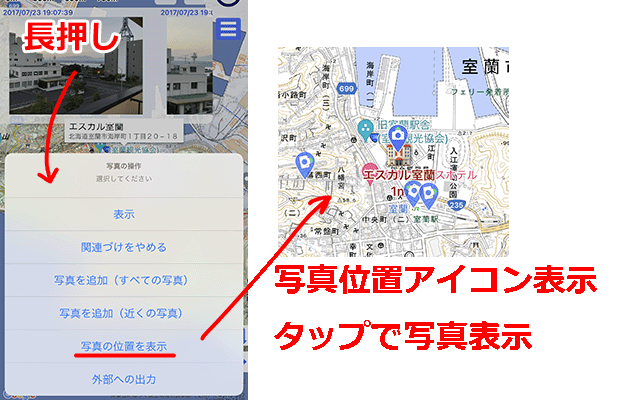 ポイントに関連付けた写真を含めて、ポイントのデータを共有したいときは、「外部への出力」で「GPX+ZIP形式」を選んでください。