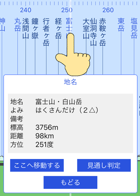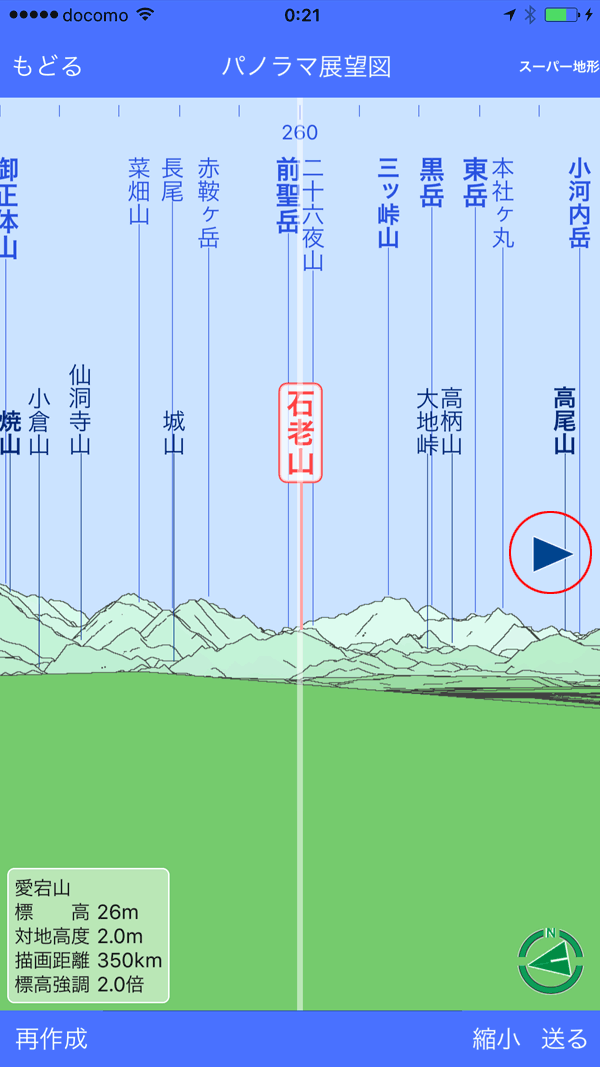 Q:パノラマ展望図で引き出し線と山頂が一致しない。