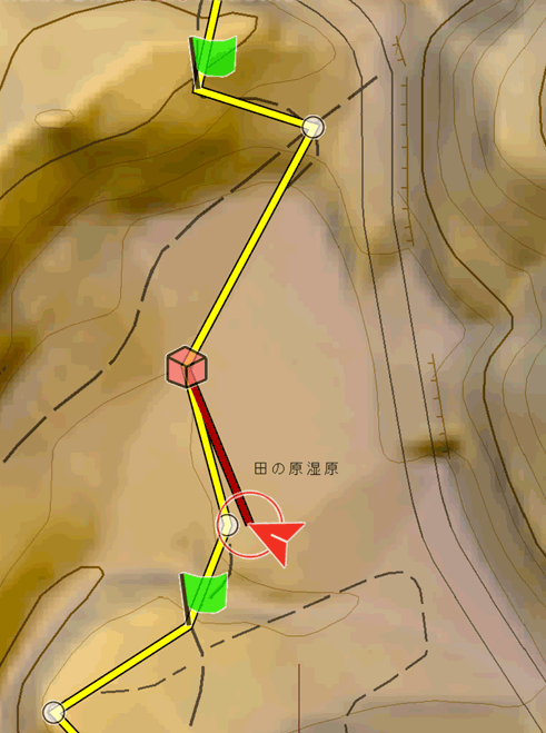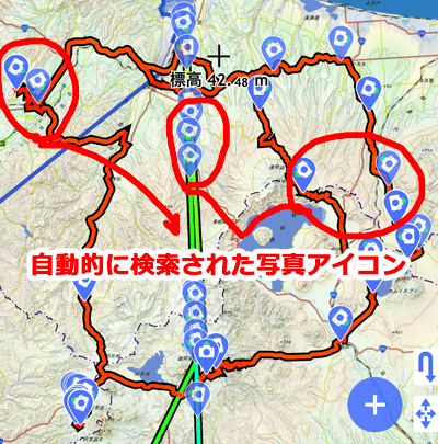 動き出したら、極端に点数の多いルートが表示されていれば、表示を消してください。