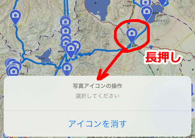 -[全般]メニューの[地図長押しでポイント記録]をOFFにしてください。