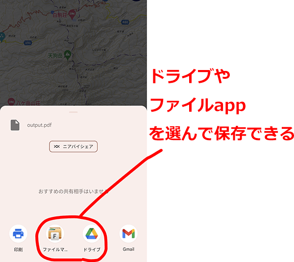 もしくは、Googleドライブ、DropBoxなど、Googleドライブ、DropBox経由でPCに取り出すようにしてください。