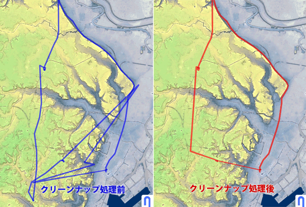 改変されたGPXファイルは一部座標の少数点が二重になってしまい、カシミール3Dで読むと縦横の線が表示され重くなります。