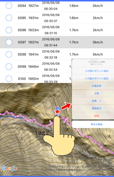 トラック編集機能と、ポイントの緯度経度の数値を変える機能を搭載しました。