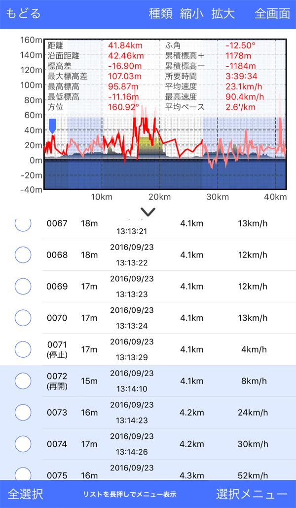 ルートに対応し、ルート編集機能を搭載。GPSに関するデータはすべて扱えます。