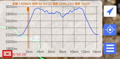 の位置情報(緯度経度やUTM座標、MGRS(UTMグリッド)など、設定による)を大きく表示します。初期状態では表示されていません。
