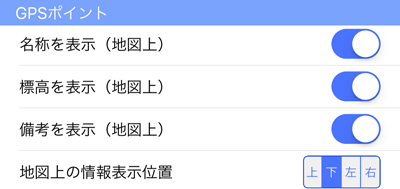 -[全般]メニューの[GPSボタンの表示]で、画面の右上に配置するか、下部に配置するか、表示しないか、を選択できます。