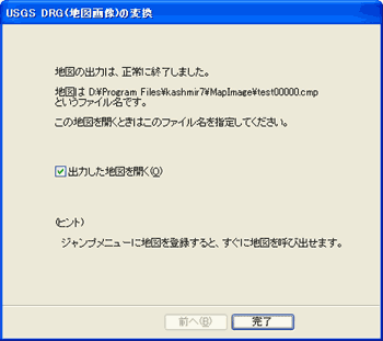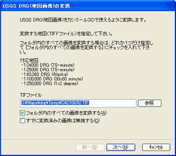 なお、このメニューは[ツール]-[USGS地図ツール]-[DRGの変換]を使ってもOKです。