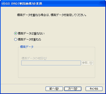DRGに重ねる標高データ(たとえば、スペースシャトル地形データなど)あれば、ここで指定できます。